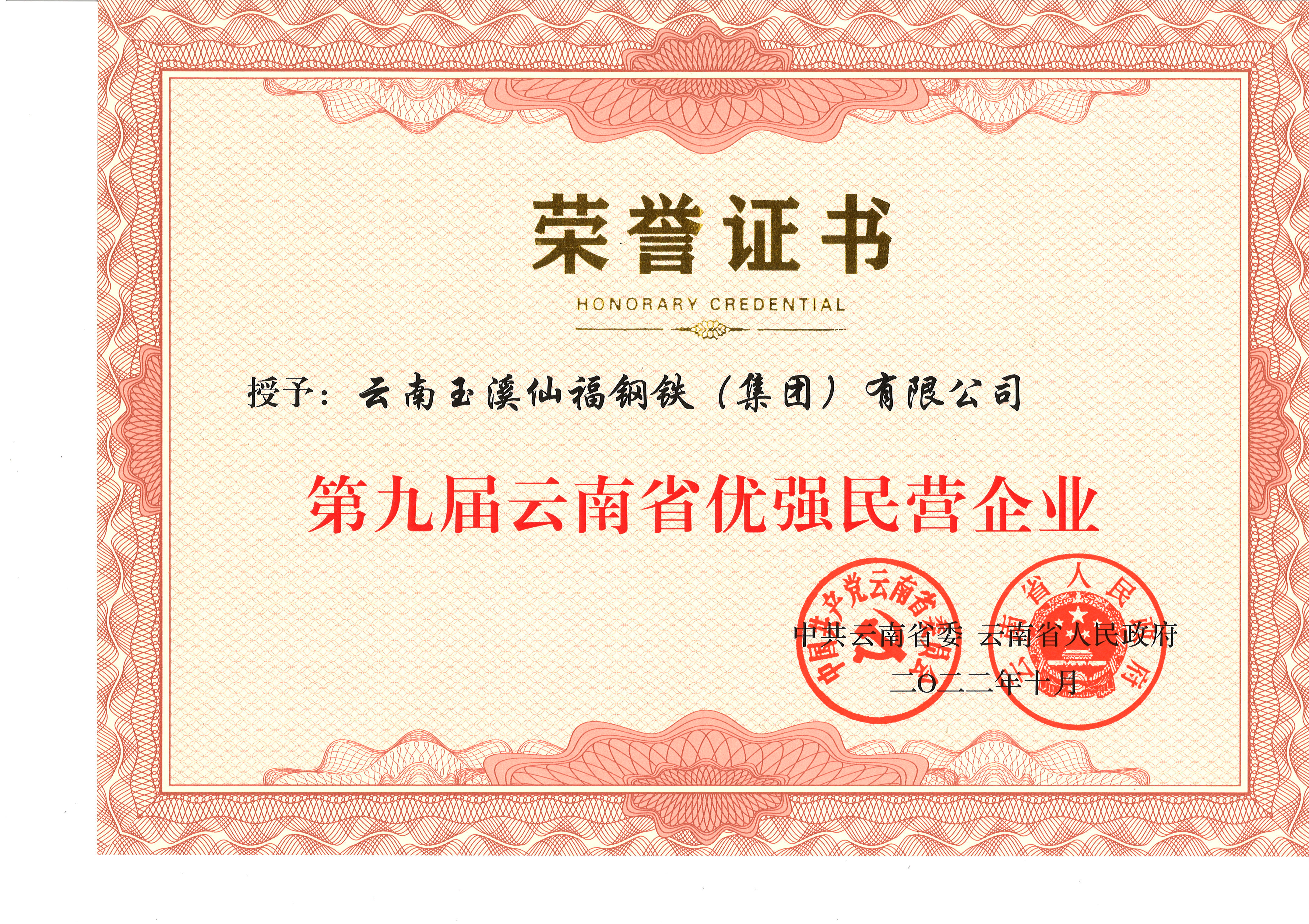 云南省人民政府授予"優(yōu)強民營企業(yè)“榮譽稱號