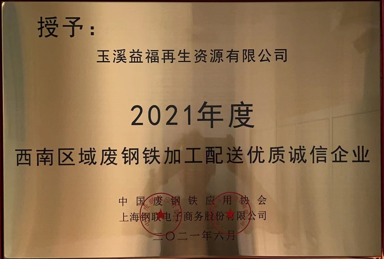 公司始終以開放的姿態(tài)與眾多的客戶攜手并進,合作共贏。多年來,先后榮獲“全國優(yōu)質(zhì)廢鋼加工配送企業(yè)”、“西南區(qū)域廢鋼鐵加工配送優(yōu)質(zhì)誠信企業(yè)”、“西南區(qū)域優(yōu)質(zhì)合作單位” 等多項殊榮。